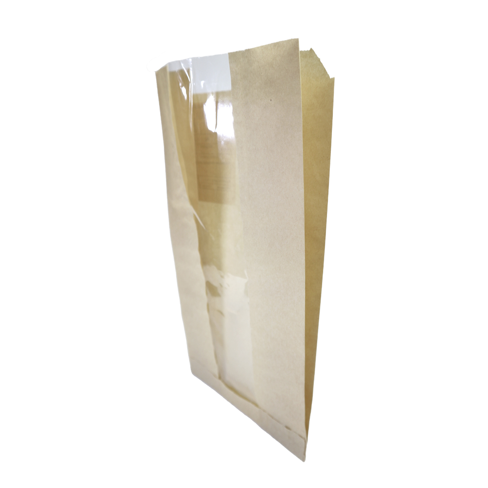 Пакет паперовий з прозорою вставкою, без малюнка Папір бурий, целюлозний, харчовий.