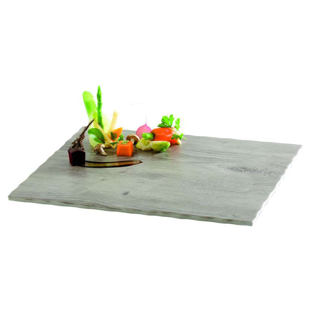 Піднос для подачі виготовлений з меламіну під колір дерева.